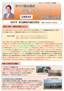 これからも現場の声を大切にし、市民の皆様と同じ目線で考えながら、安全・安心で住みやすい野田市の実現に向け、共に歩んでまいりましょう。